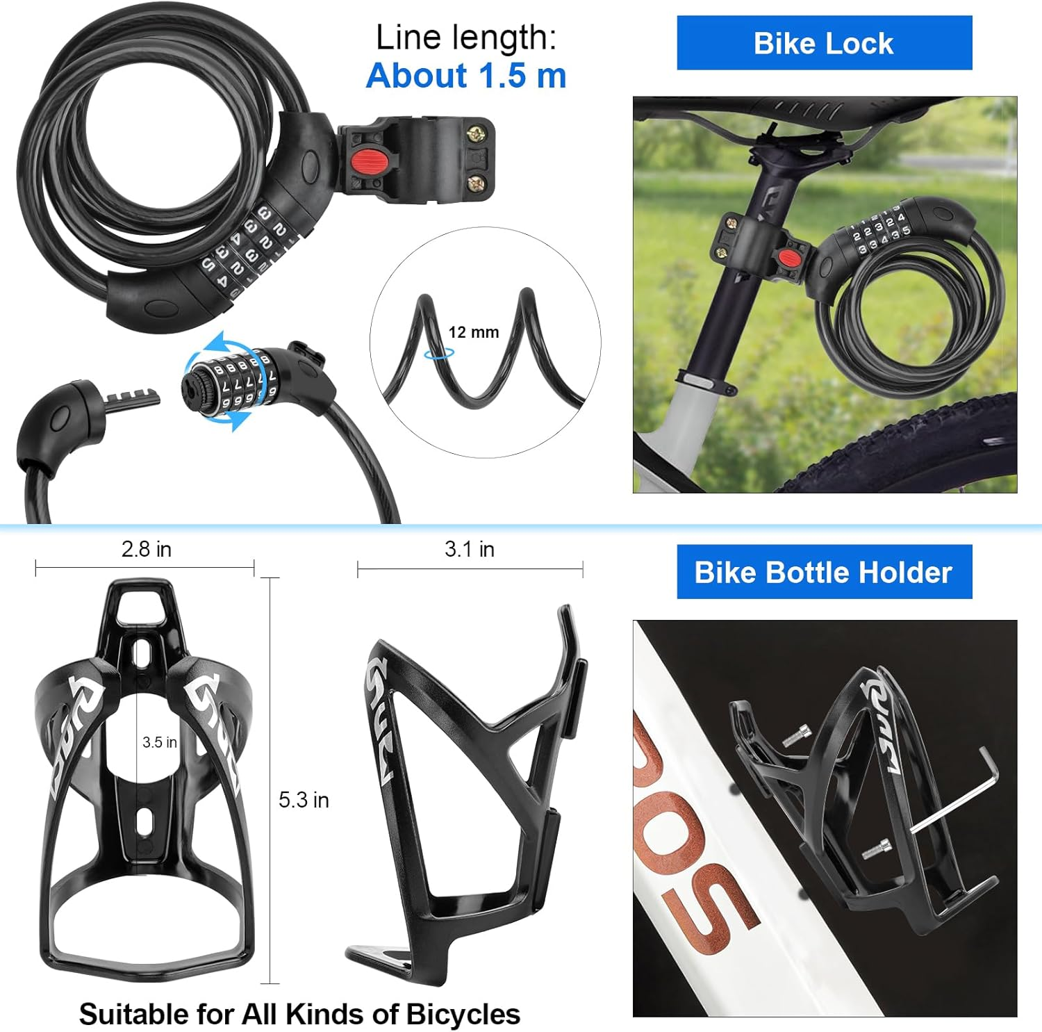The set of bicycle accessories features good practicability, lightweight and easy to carry, store and disassemble, good helper for bicycling in daily life !