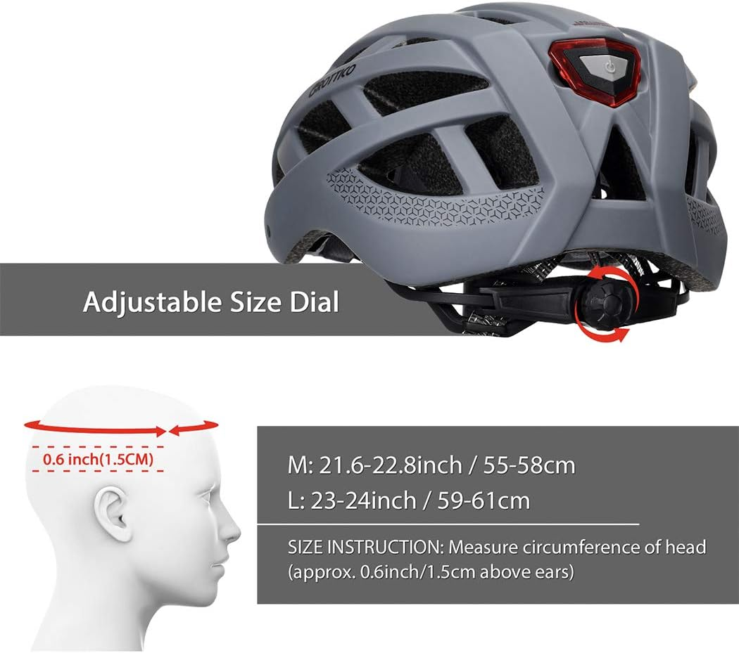 • INTEGRATED SAFETY REAR LIGHT – Bicycle helmet with USB rechargeable light. Best for night riding with 3 lighting modes, Steady, Flash and Wave.