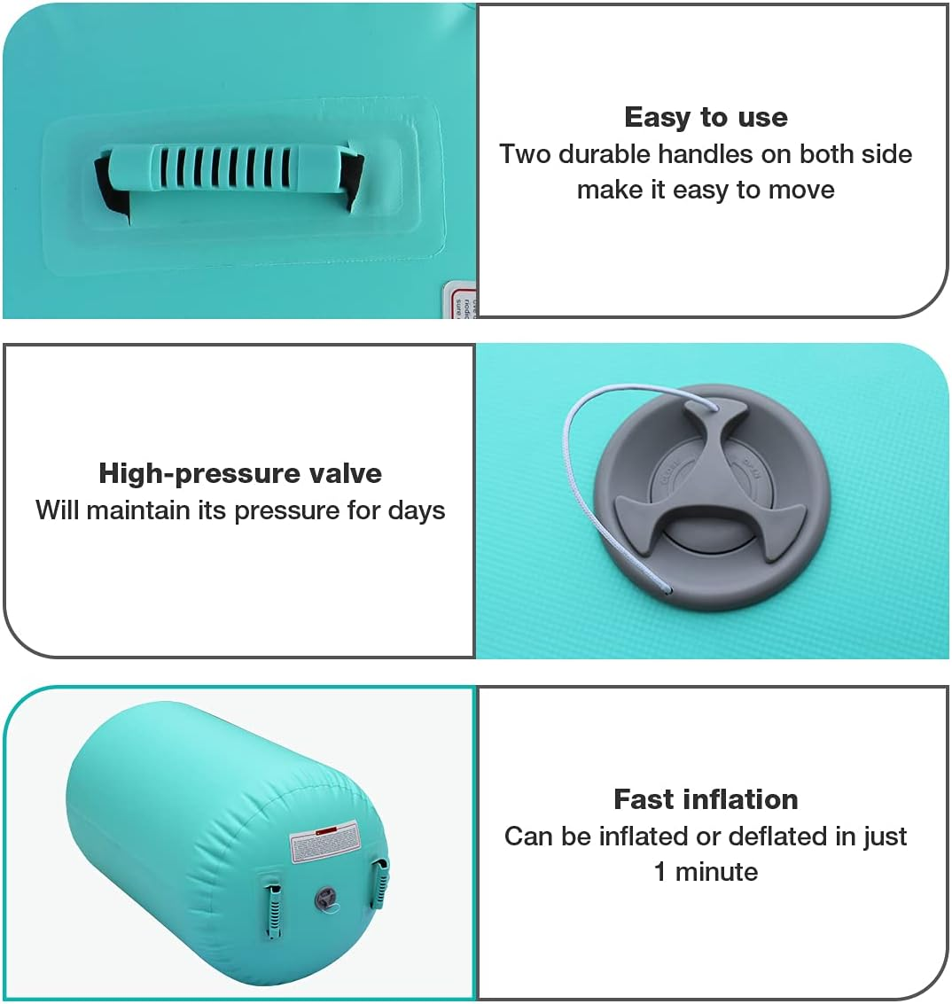 Compared with other foam octboyncygon, the gymnastics air roller can extend the using time and reduce the risk of injury and increases the repetitive frequency .Our gymnastics roller is soft enough to allow you jump higher and safe to land on. 100% waterproof material allows you to use our mat in your perfect Water Sport Activities or more fun!