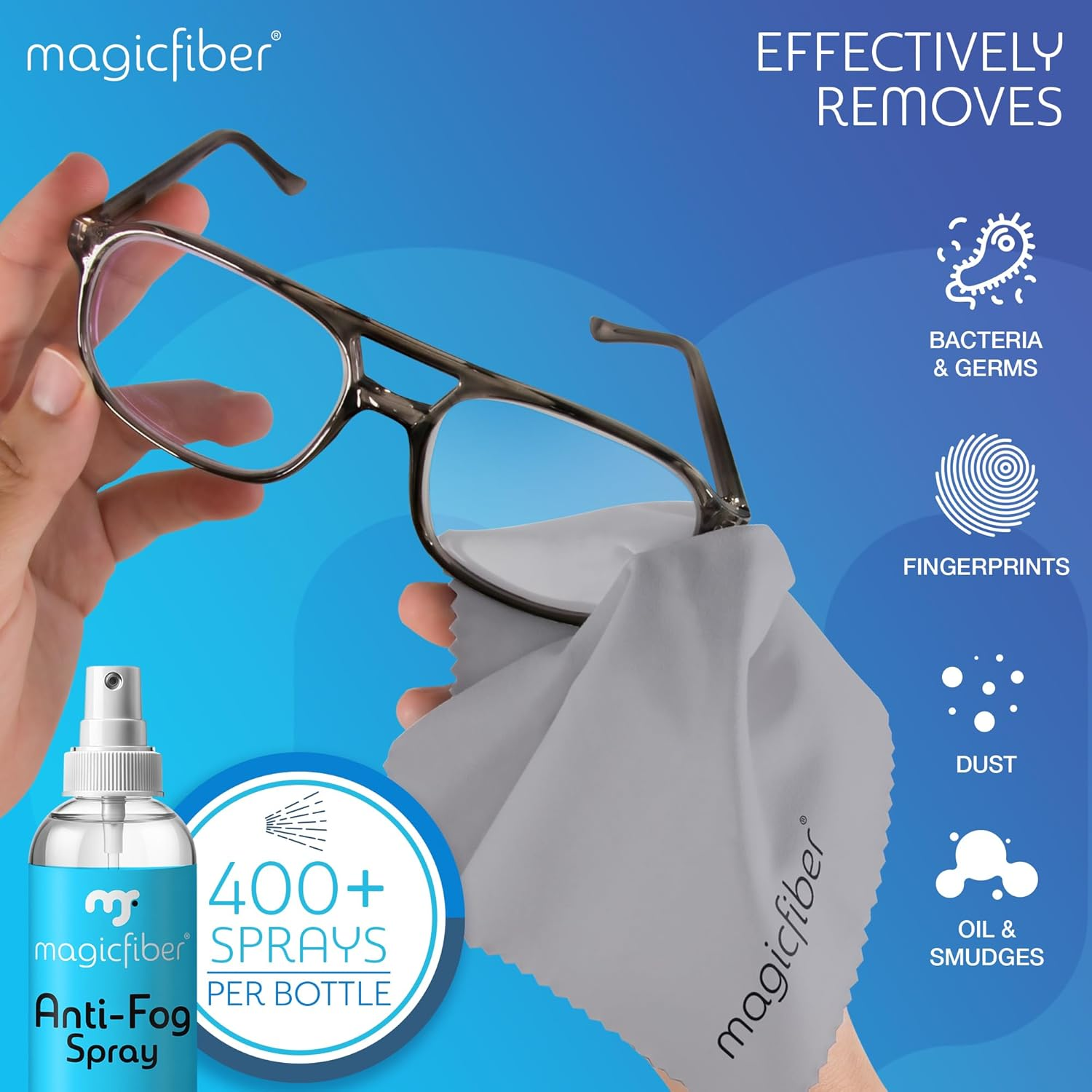 • Glasses Cleaner Kit: Our kit includes one 2 oz. anti fogging spray for glasses and two 6”x7” MagicFiber microfiber cleaning cloths to keep your glasses crystal-clear and always looking good as new. The perfect eyeglass cleaner and anti-fog kit for women, men, him, her, adults, teens, and more.