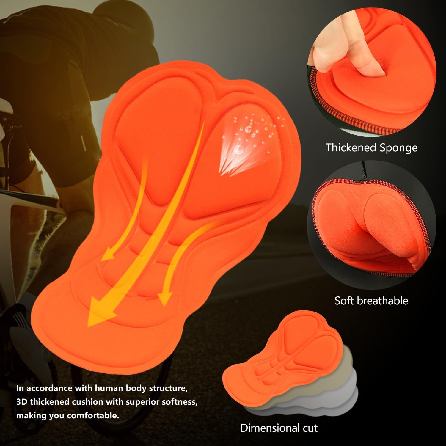 3D padded cushion with plenty of air vents provides great comfort for longer rides.