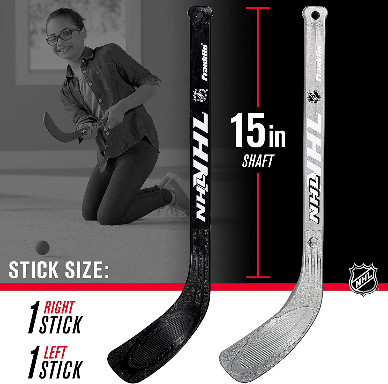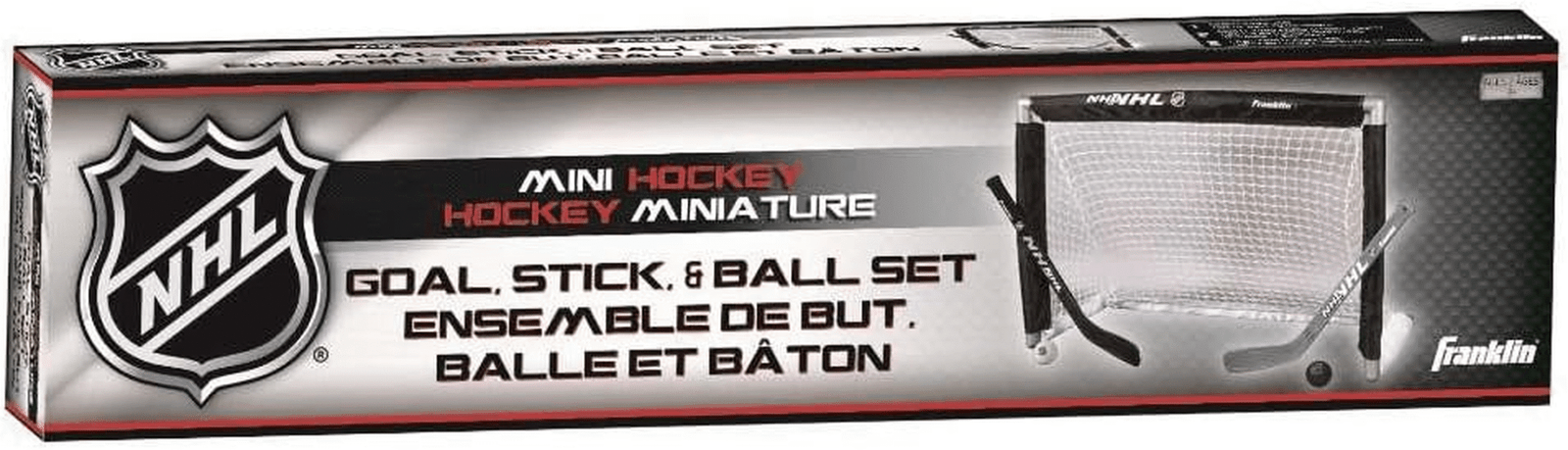 What started off as a simple game played on your knees with cut-down Hockey sticks, has evolved into full scale craze. Franklin and the NHL are proud to offer the most extensive line of Mini / Knee Hockey products available today. Introduce your young player to all the fun and action with the Franklin NHL Mini Goal, Stick and Ball set. The mini goal features rugged high-impact 1″ plastic tubing and durable netting. This beginner set includes 2 mini sticks (1RS, 1LS) and 2 foam mini Hockey balls. The goal is easily assembled, let the games begin. Goal Size: 28″ (W) x 20″ (H) x 12″ (D).