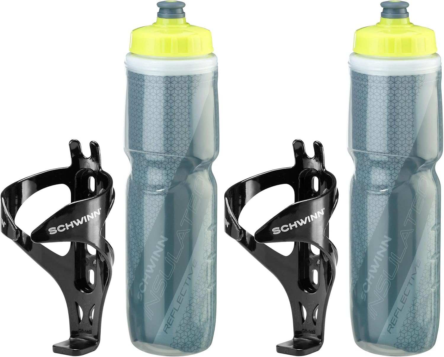 Upgrade every ride with the Schwinn Reflective Insulated Water Bottle and Cage Combo. The 26-ounce BPA-free bottle is wrapped in reflective material that lights up in headlights, boosting your visibility on dawn, dusk or nighttime rides. Double-wall insulation keeps water cold longer, while the soft, easy-squeeze design and leak-resistant dual-stage nozzle let you hydrate quickly without spills. After the ride, the bottle rinses clean in seconds. A lightweight polymer water bottle cage – secured with the included bolts – mounts to most bike frames using a 4 mm Allen wrench, keeping your drink within easy reach without adding extra weight. From weekday commutes to weekend centuries, this Schwinn bottle and cage deliver the cooling refreshment, safety and convenience every rider deserves.