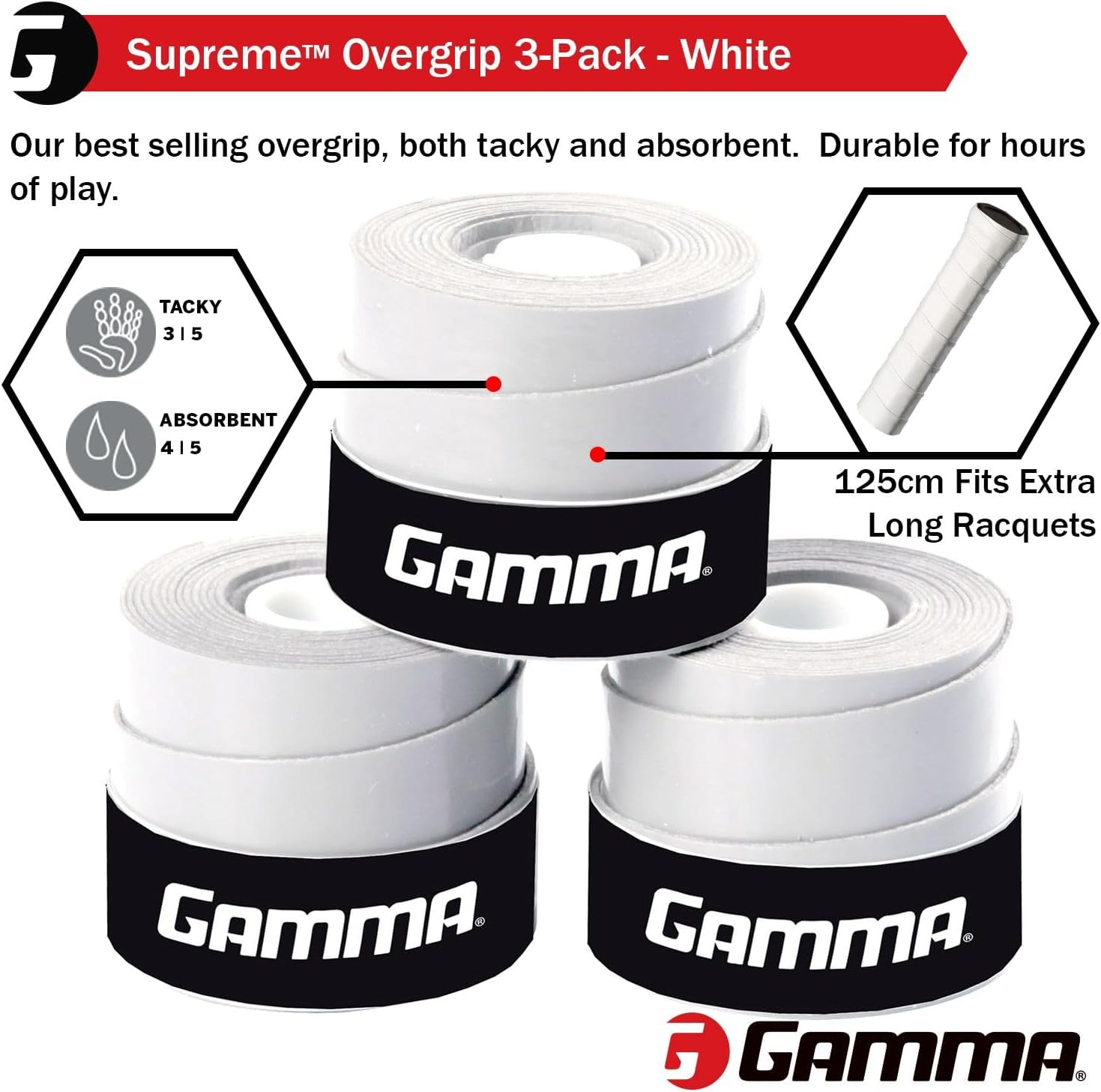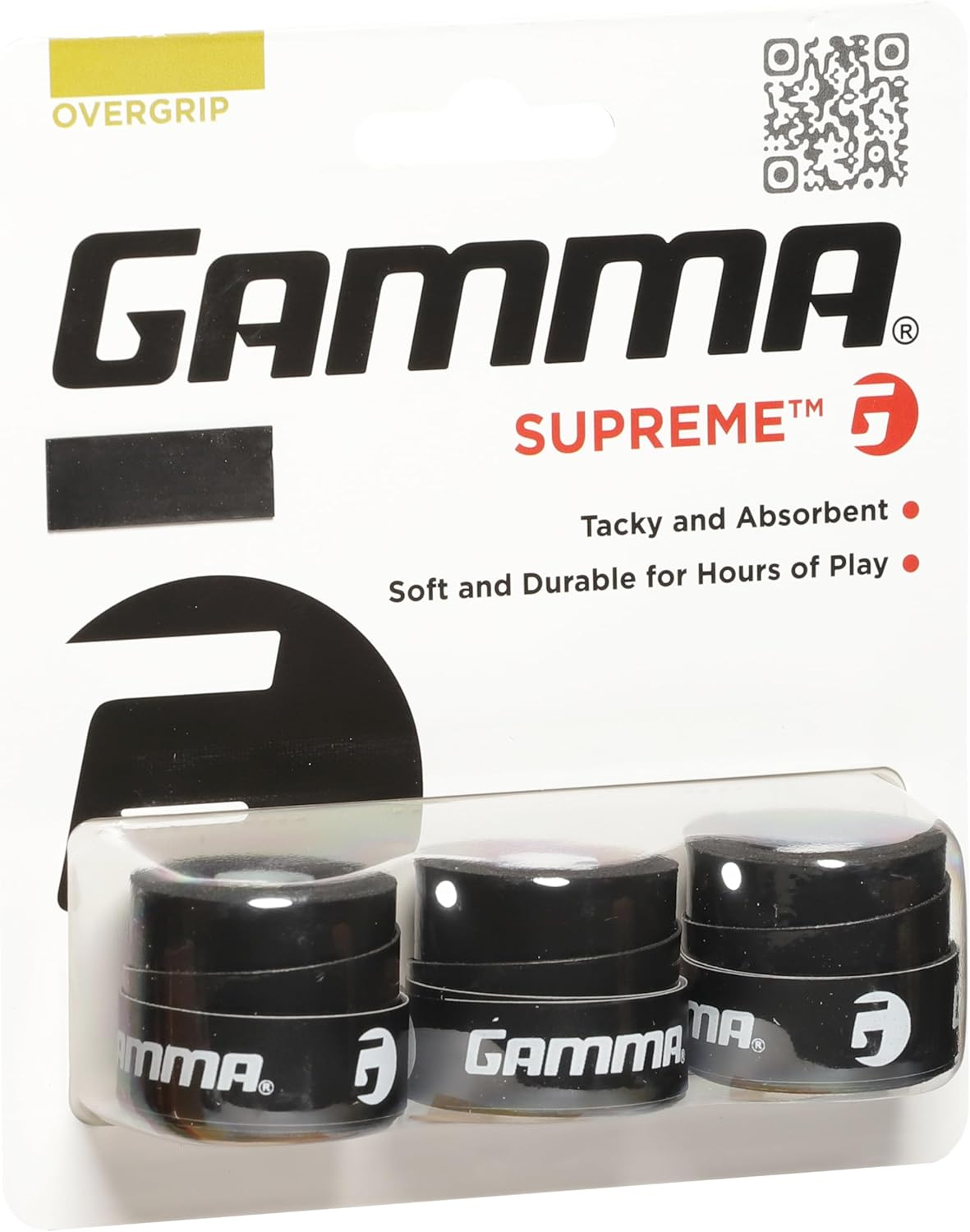 TOP-PERFORMANCE RACQUET GRIP TAPE: GAMMA Supreme Overgrip will help you rule the court; These soft grip-tape wraps are made to be long-lasting and feature absorbent material combined with extreme durability to keep up with your game.