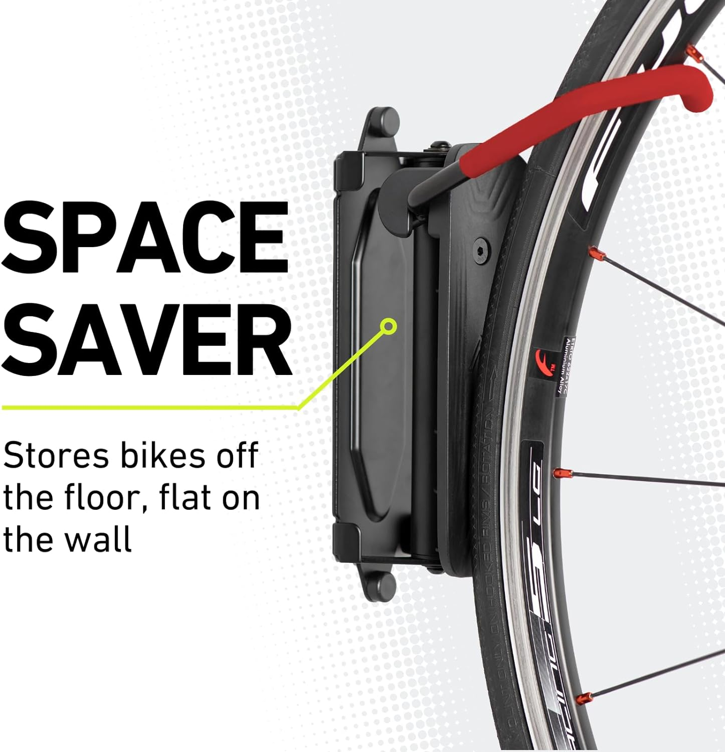 BIKE STORAGE FOR TIGHT SPACES – Wall mount bike rack conveniently stores bikes in center, left or right-angled position, perfect for inside apartments or around parked cars. Simply hook the front wheel into position, place the rear wheel against the stabilizer, and swivel bike rack wall mount to desired angle. Your bike will stay in position providing secure storage.