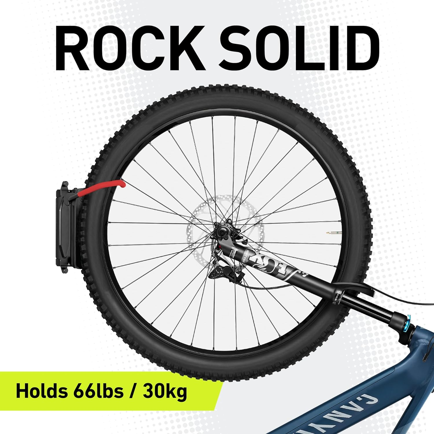 SAFE & SECURE – Vertical bike wall mount – The angled hook allows for easy mounting and dismounting. Rubber coated wall mount hook relieves pressure on the wheels, rims, and spokes and protects from unwanted scratches. Holds bikes up to 30 kg/66.2 lbs.