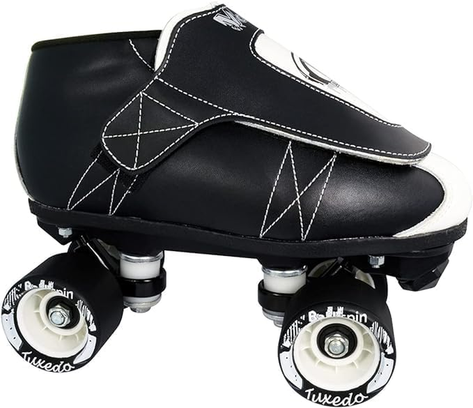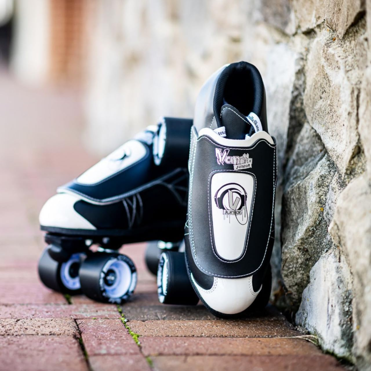 For skaters who like to keep it classy Dress to the nines with the Vanilla Junior Tuxedo jam roller skates! Designed and tested by none other than “Team Vanilla”, the Tuxedo introduces a skate with style and performance to match Inspired by Brandon Perea, the world’s most popular professional skater, this boot is sophistication in a skate. Featuring a strong, fully stitched rubber outsole and super tough skate shoe lining, you are looking at design perfection. With soft, durable and scuff resistant leather, you’ll be able to skate hard and skate often. The frame on this package is Vanilla’s Gorilla nylon plate with aluminum trucks, and features a 5-degree action to increase stability with specially designed, cone-shaped cushions to increase response. Vanilla jam plugs, designed and tested by Team Vanilla for all types of skating, are the recommended toe stop choice but the package is available with Adjustable Toe Stops as well. The Vanilla speed skate ABEC-9 bearings will have you flying around the floor, and have been rigorously tested by Team Vanilla to make sure they will endure the test of time. Surrounding top notch bearings are high-quality, super light Backspin Tuxedo Wheels that come with a lifetime warranty. Look good and skate hard with the Vanilla Junior Tuxedo Jam roller skates. Ladies, please go down one size for the perfect fit. Example: Men’s Size 7 = Ladies’ Size 8