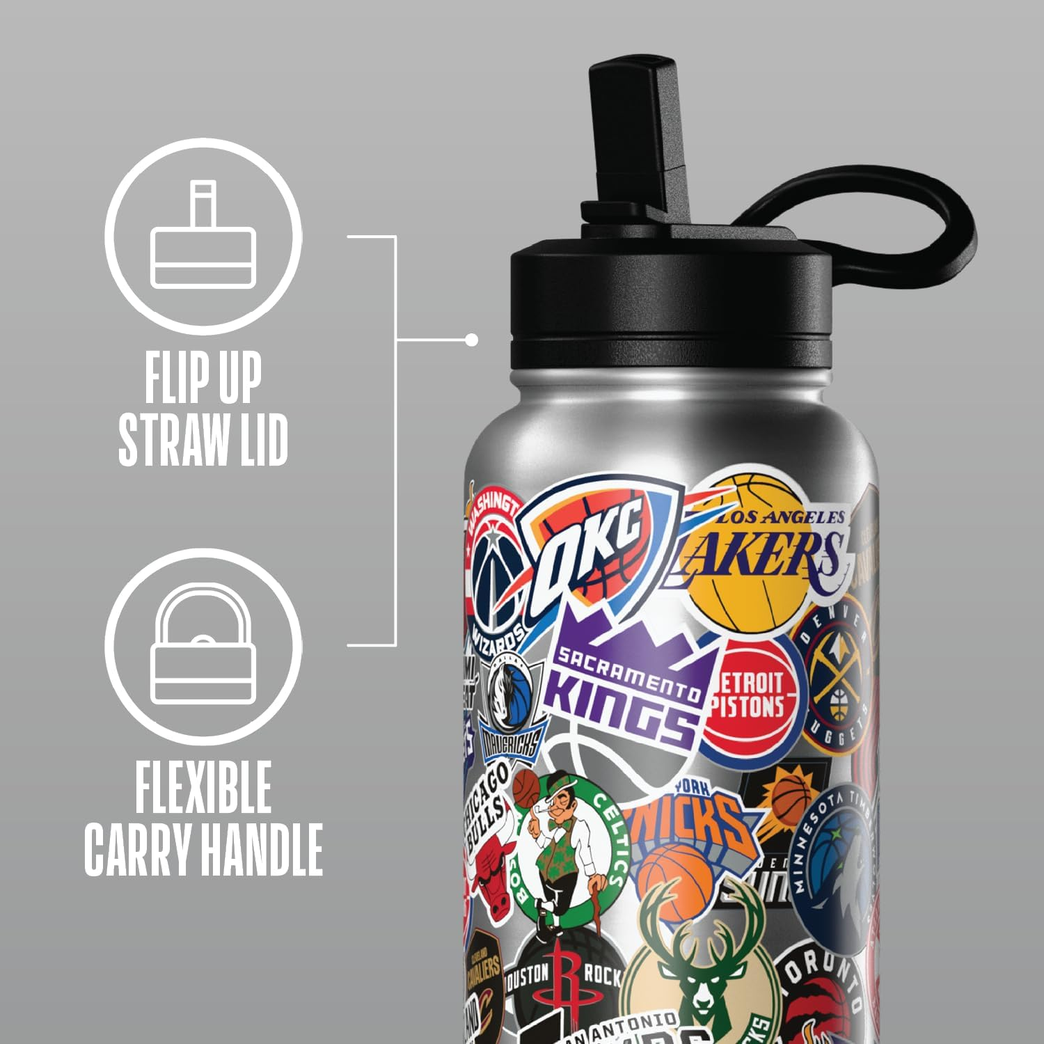 X NBA Officially Licensed All Team Sticker Print 32 Oz Insulated Water Bottle with Straw Lid and Handle (NBA Current, 32 Ounces)